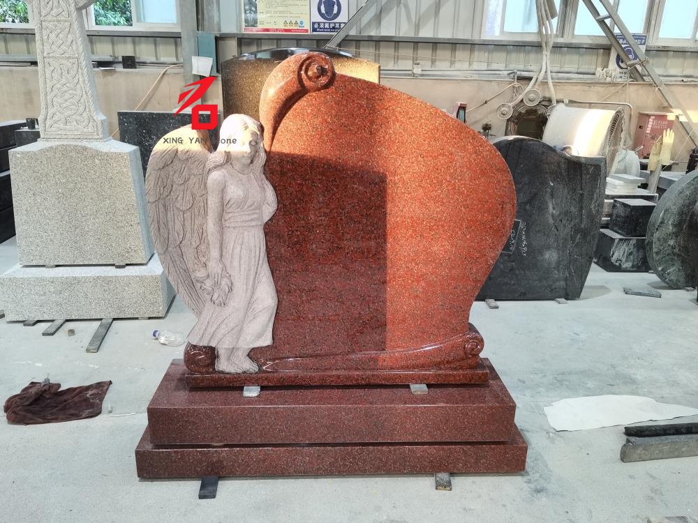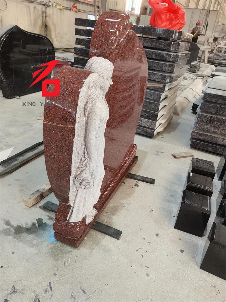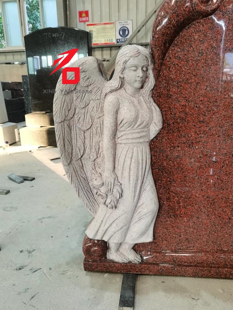 Ý tưởng thiết kế: Ý tưởng thiết kế cốt lõi là "Người bảo vệ thiên thần". Đá granite màu đỏ tượng trưng cho sự trang trọng và tưởng nhớ, trong khi hình ảnh thiên thần truyền tải sự thương tiếc và an ủi tinh thần cho người đã khuất. Thiết kế tổng thể thoát khỏi sự đơn điệu của bia mộ truyền thống, kết hợp sức hấp dẫn nghệ thuật với sự cộng hưởng cảm xúc.