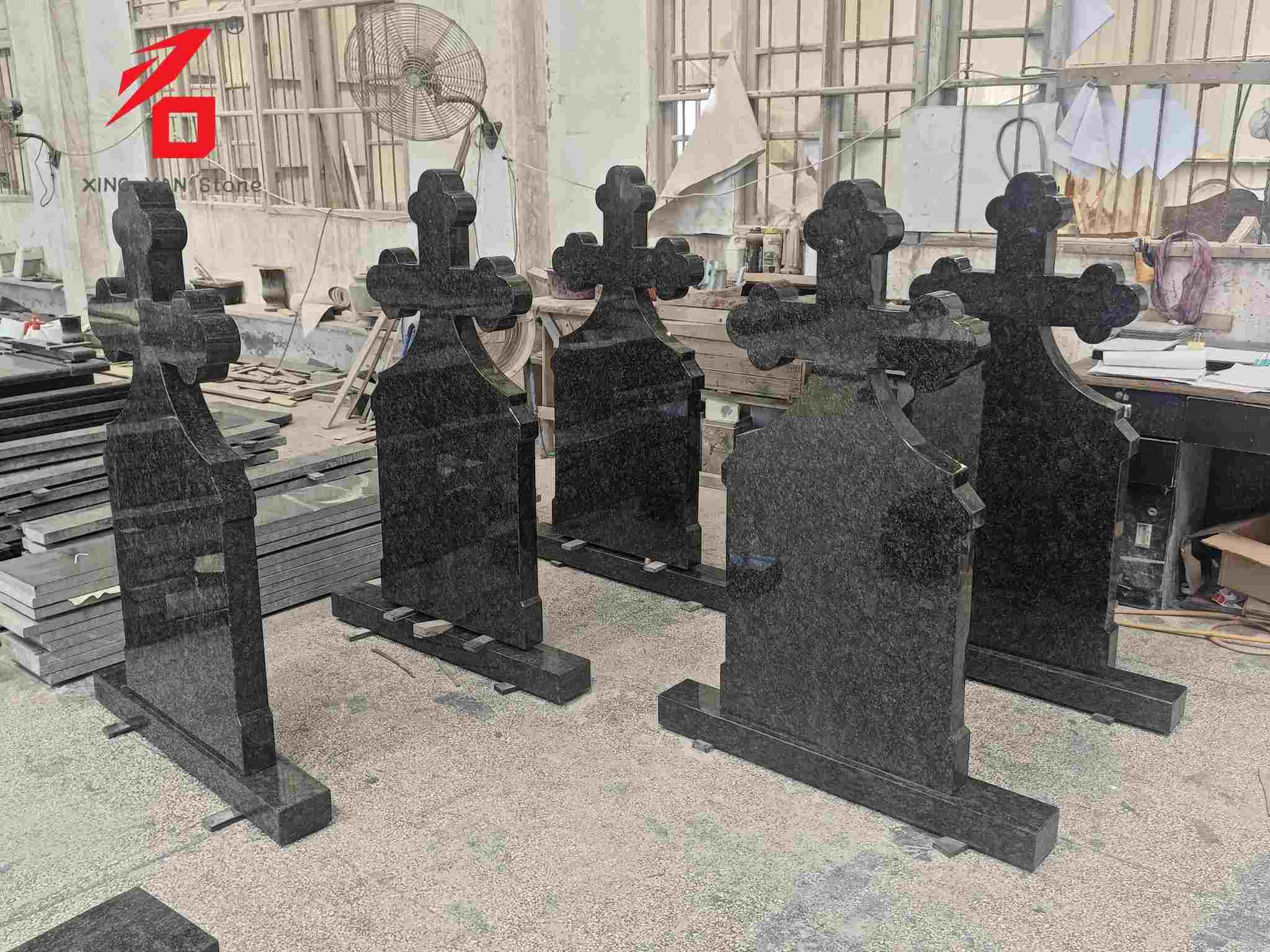 Chất liệu: Đá granite đen mật độ cao được lựa chọn, có đặc tính đá dày đặc và cứng, chịu được thời tiết và chống xói mòn. Bề mặt trải qua quá trình xử lý đánh bóng tốt, mang lại độ bóng cao và kết cấu đồng đều. Được thiết kế để đặt ngoài trời trong thời gian dài, nó có khả năng chống phai màu và biến dạng, đảm bảo độ bền và tính toàn vẹn về hình ảnh của bia mộ.