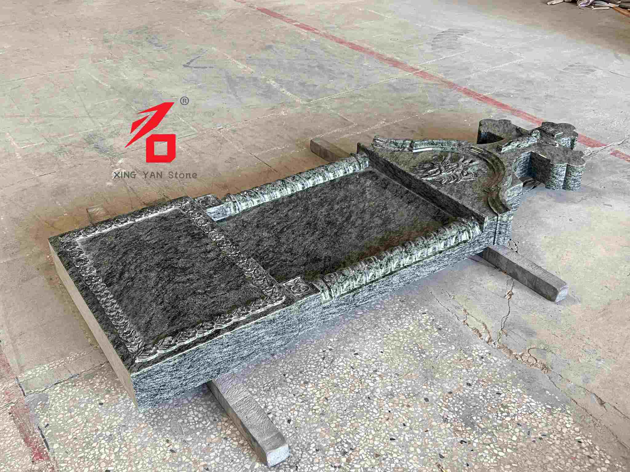Chất liệu: Đá granite mật độ cao, cứng, chịu mài mòn, chịu được thời tiết và chống ăn mòn, cho phép bảo quản ngoài trời lâu dài và đảm bảo bia mộ luôn đẹp như mới.
