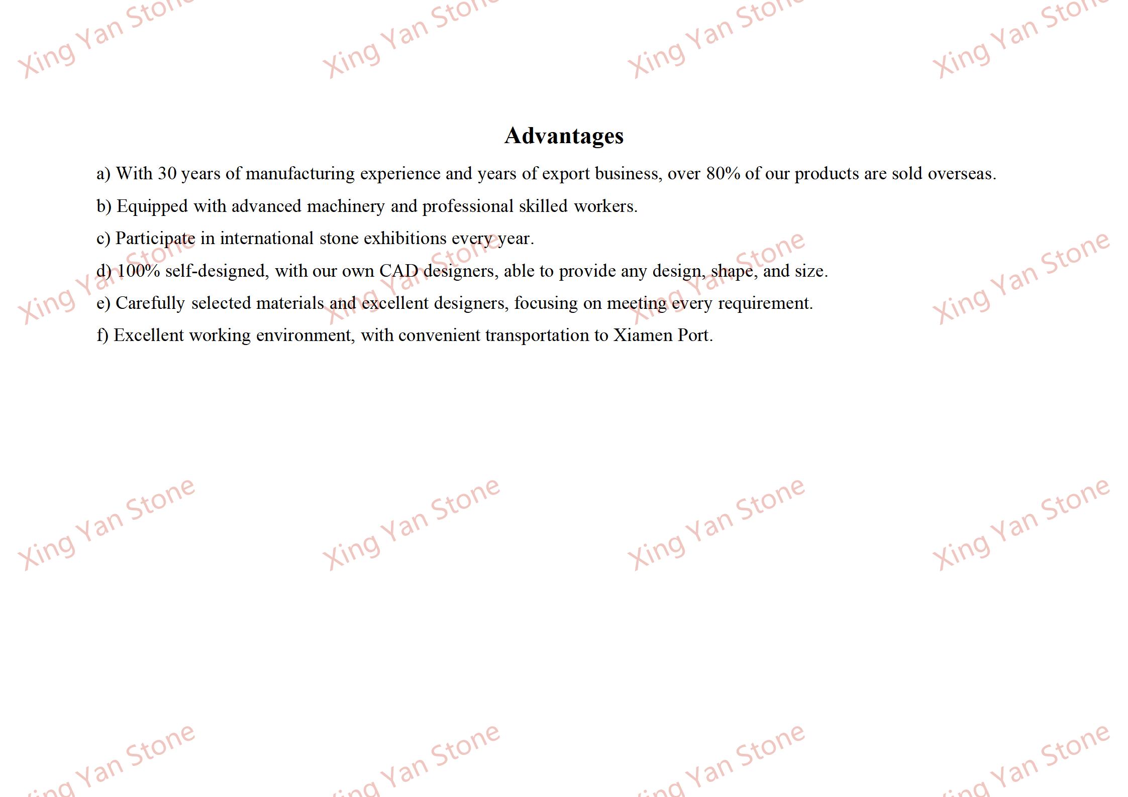 Đặc tính vật liệu: Được làm bằng đá cẩm thạch trắng cao cấp (hoặc đá cẩm thạch trắng tương đương), có kết cấu tinh tế và ấm áp, màu trắng tinh khiết, mật độ đá cao và khả năng chống chịu thời tiết. Nó có khả năng chống phai màu và biến dạng ngay cả khi đặt ngoài trời trong thời gian dài, kết hợp giữa tính thẩm mỹ và độ bền.